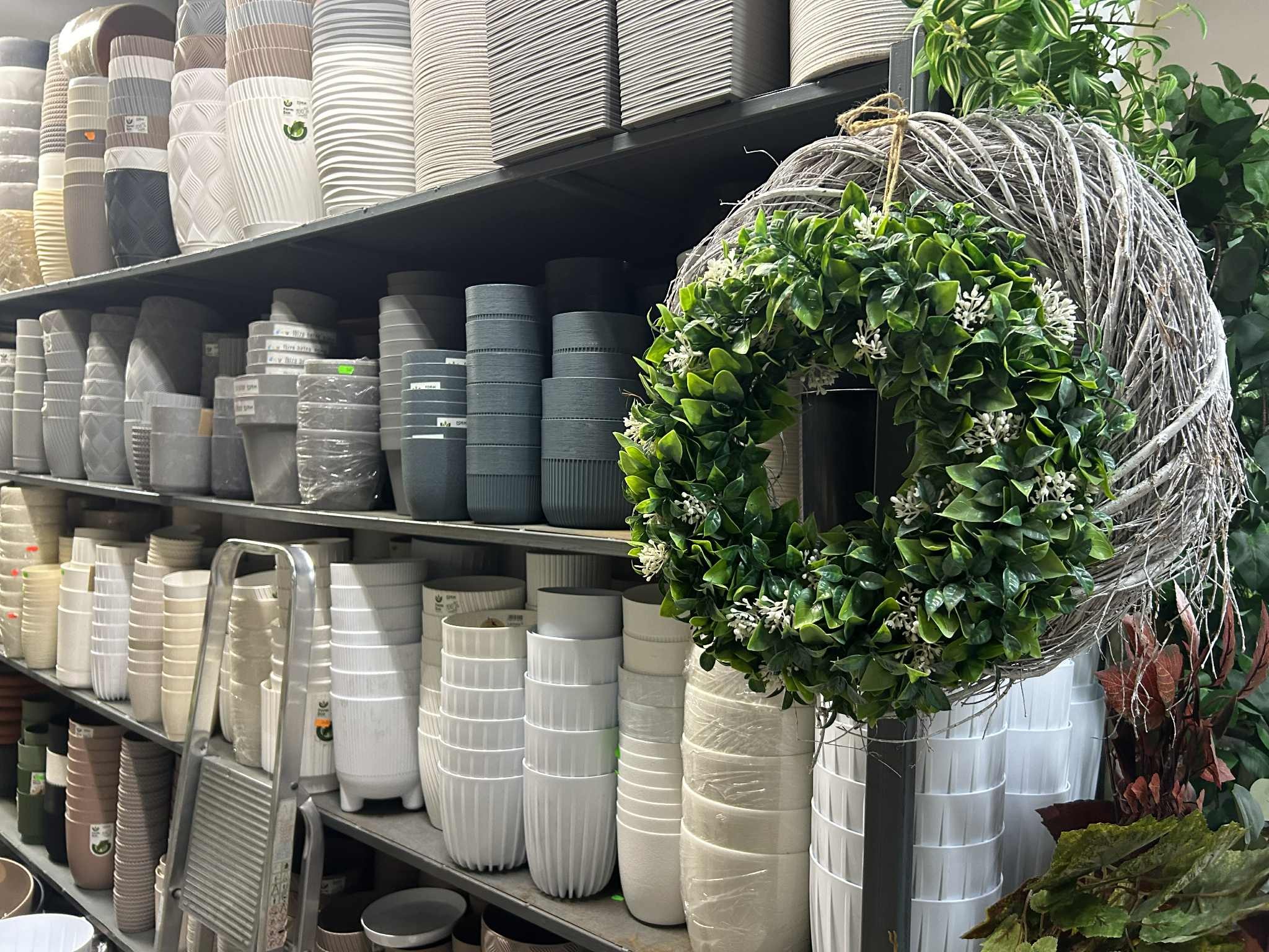 doniczki ceramiczne,doniczki plastikowe, ozdoby, owoce,kora,ziemia ogrodowa, trawa